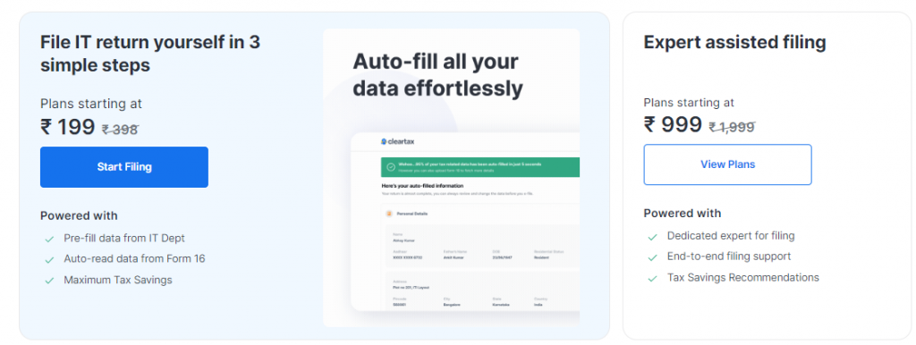 Step 1: Login to your ClearTax account (www.cleartax.in). You can file your ITR in a few simple steps. To begin ITR filing, click on the ‘Start Filing’ link.
