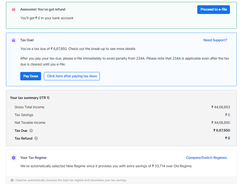 The ClearTax portal allows you to switch the tax regime at this stage. You can also view and download your tax report.